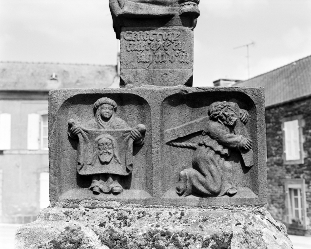 Elévation ouest, détail de la base : sainte Face et montée au calvaireImmatriculation