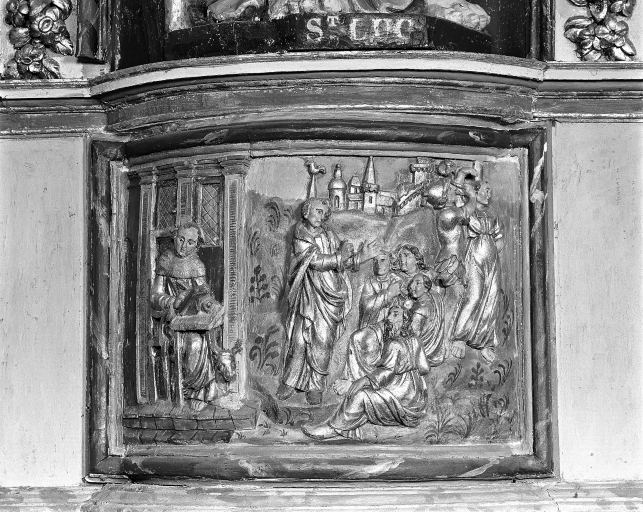 Partie panneau sculpté (scène de la vie de saint Luc)Immatriculation
