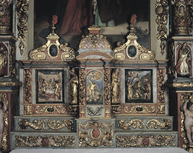 Tabernacle et gradins (la Pâque, sacrifice d'Abraham, pluie de manne, saint Joachim, saint Joseph)Immatriculation