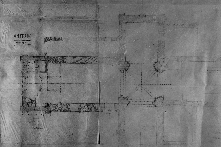 ANTRAIN. Plan au sol, par Arthur Regnault, mars 1905. (A.D. Ille-et-Vilaine).