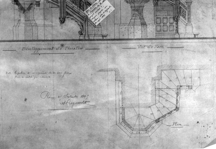 Dessin de l'escalier de la chaire à prêcher par A. RegnaultImmatriculation