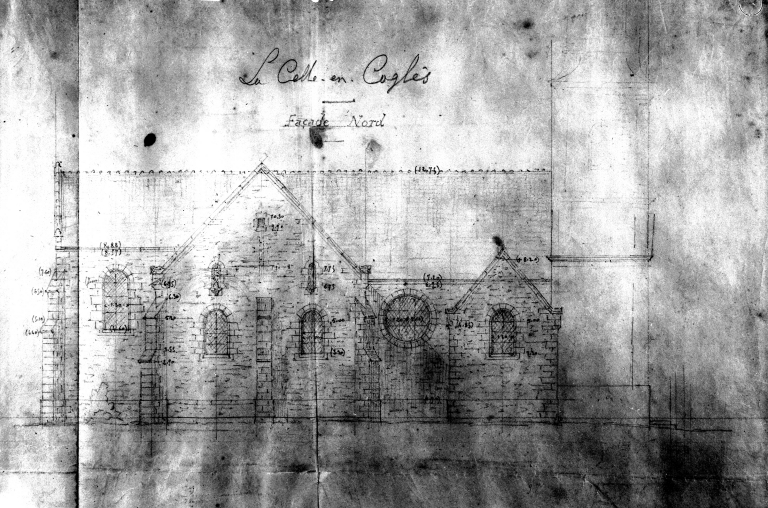 Elévation de la façade Nord de l'église.Immatriculation