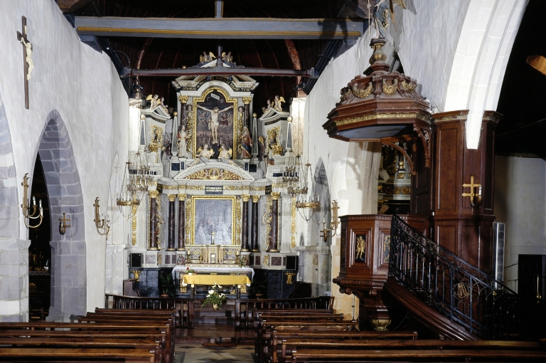 Intérieur, choeur : vue générale.Immatriculation