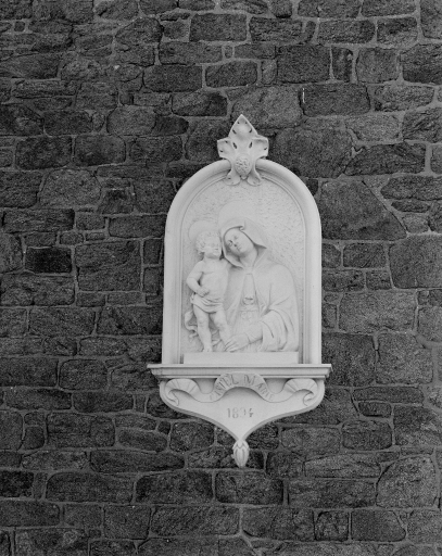Elévation est, détail niche de la Vierge à l'Enfant portant date et appellation de la villa.Immatriculation