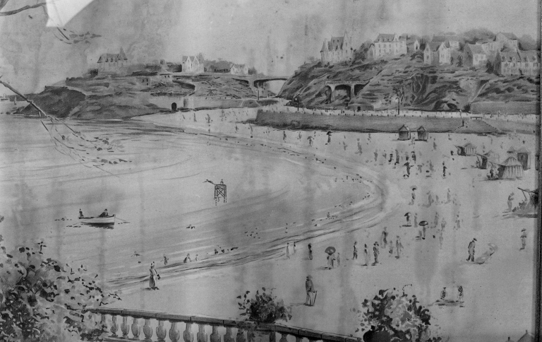 Affiche, Bizien Félix. Dinard. Détail de l'arrière plan. Le Moulinet avant les aménagements du 20e.Immatriculation