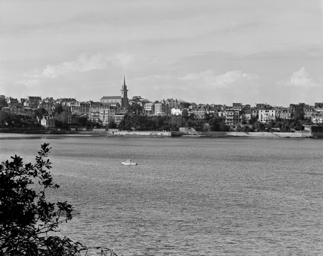 Côté est de la ville de Dinard. Vue d'ensemble prise de la Vicomté quai de la Perle et promenade au Clair de lune.Immatriculation