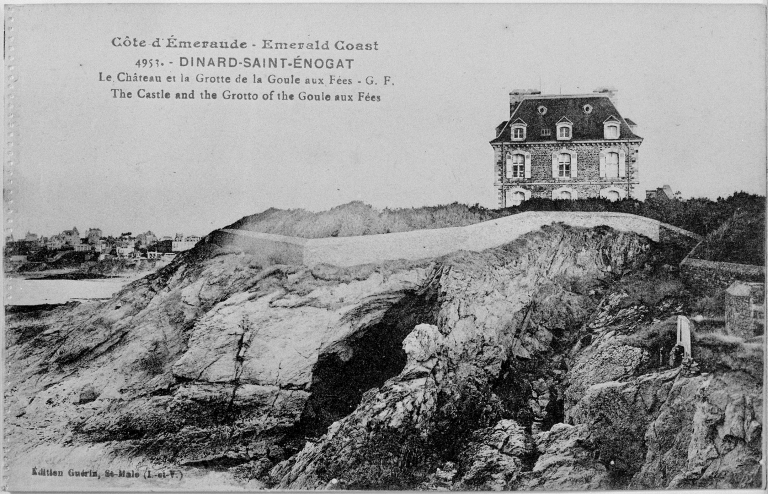 Côte d'Emeraude - 4953. Dinard - Saint-Enogat. Le Château et La Grotte de La Goule-aux-Fées. Edition Guérin, Saint-Malo (I.-et-V.). Carte postale ancienne.Immatriculation