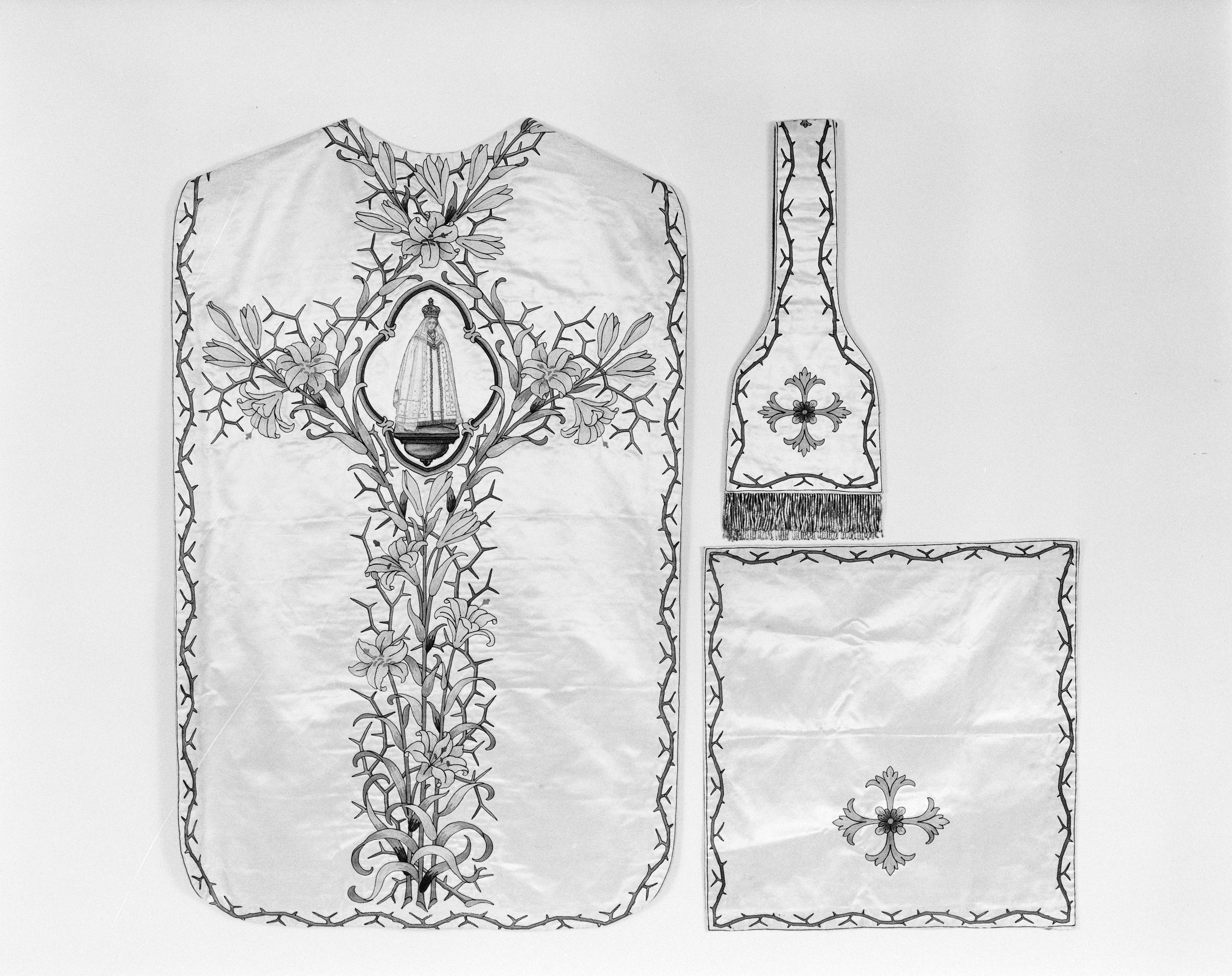 Ornement blanc 2 : chasuble, manipule, voile de calice, basilique Notre-Dame-du-Roncier (Josselin),