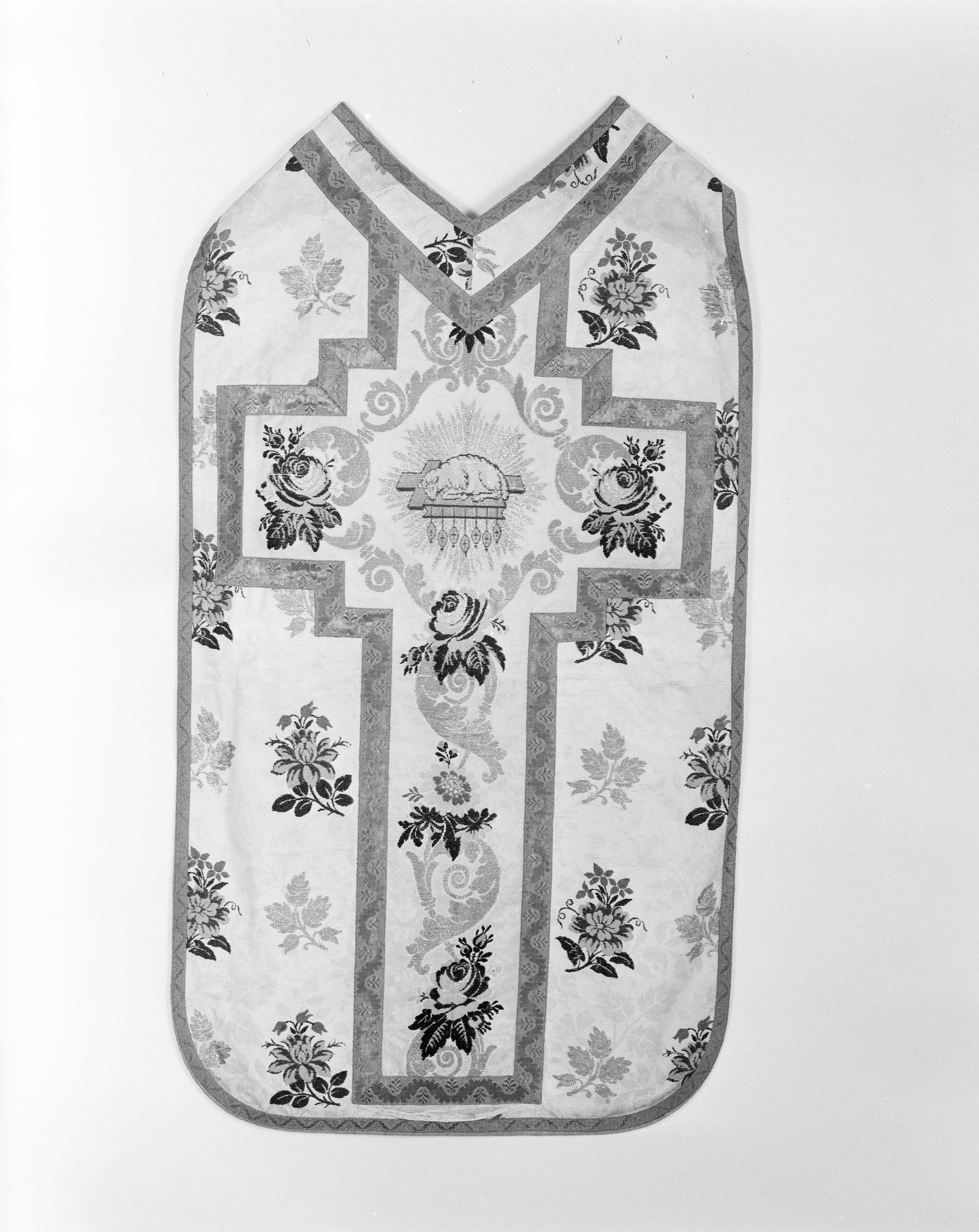 Ornement blanc 3 : chasuble, bourse de corporal, pale, basilique Notre-Dame-du-Roncier (Josselin),