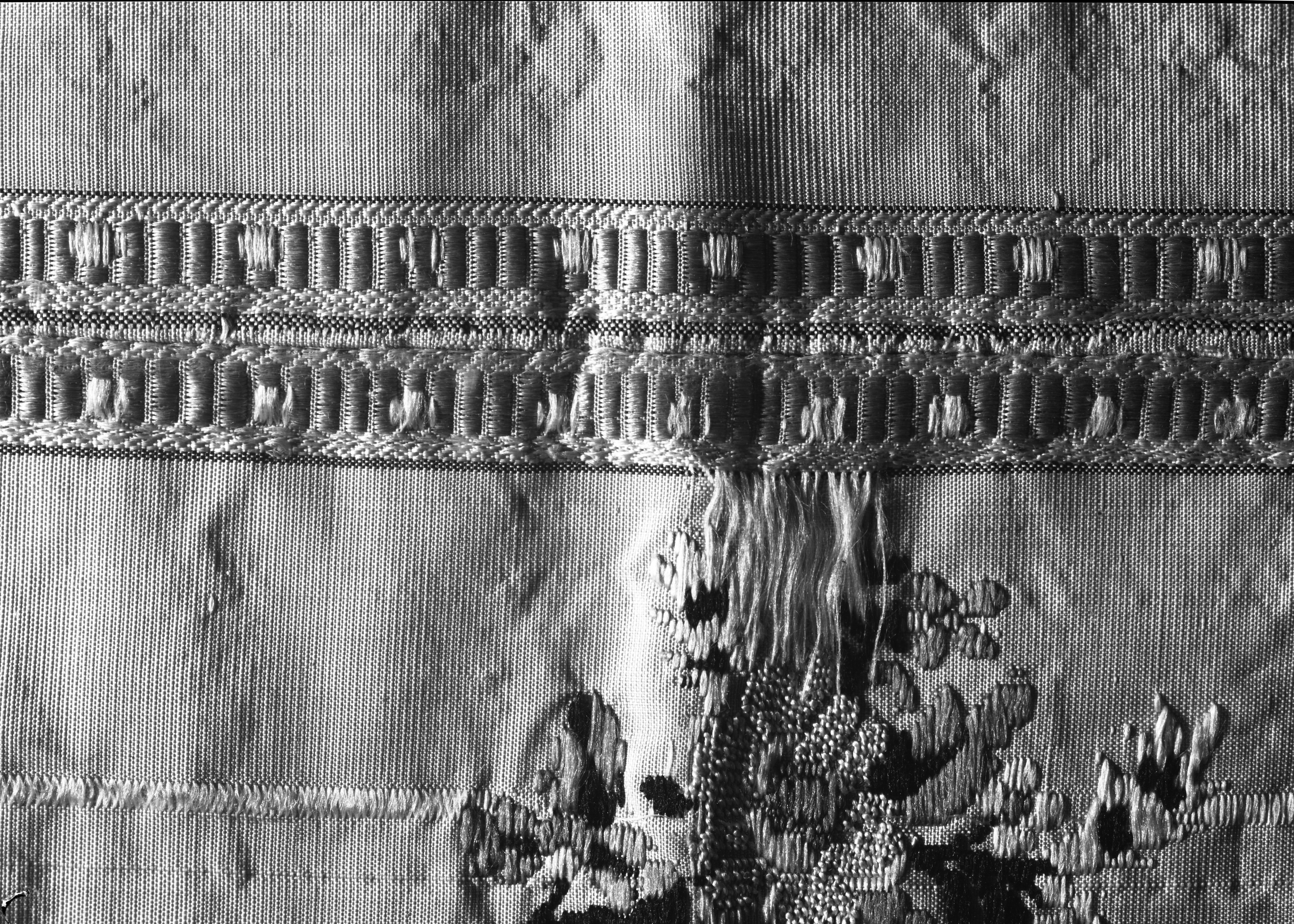Chasuble, dos : macrophotographie du tissu du fond (état en 1995)Immatriculation