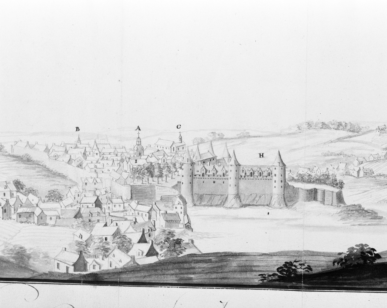 Vue topographique et château de Josselin. Dessin, vers 1750 (B. M Rennes, coll. Robien)Immatriculation