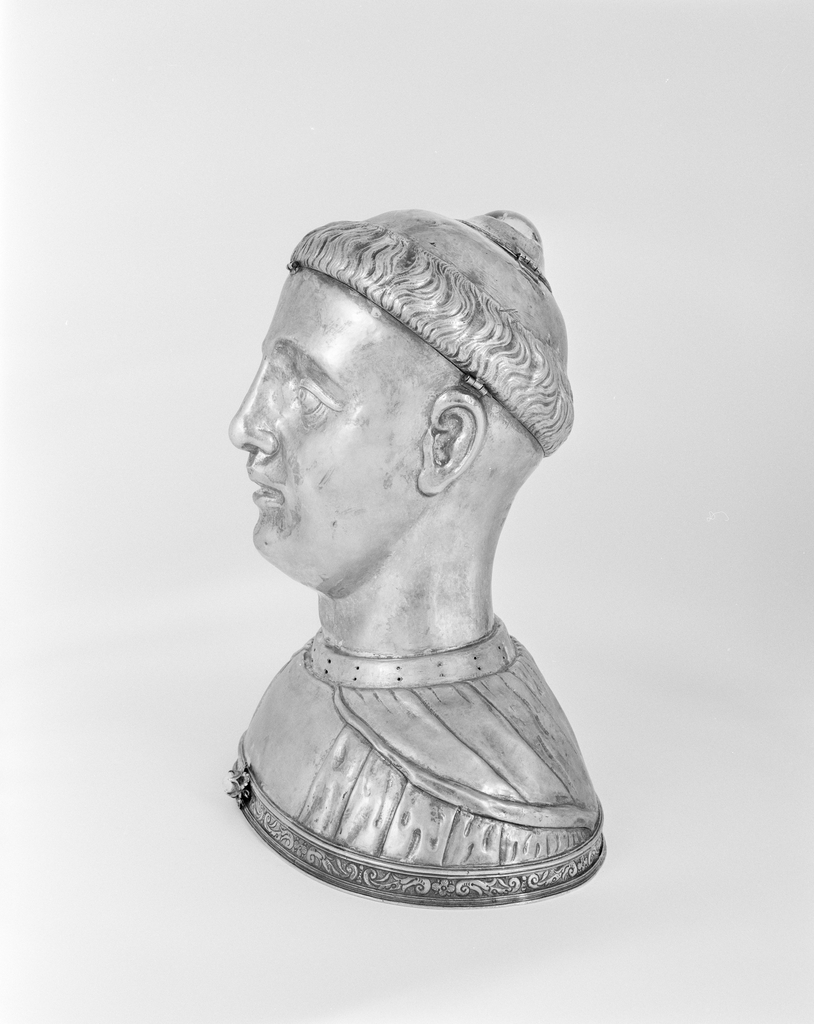 Reliquaire morphologique (chef-reliquaire) : saint Gildas, abbaye de bénédictins Saint-Gildas, de bénédictins de la congrégation de Saint-Maur, de soeurs de la charité de Saint-Louis (Saint-Gildas-de-Rhuys),