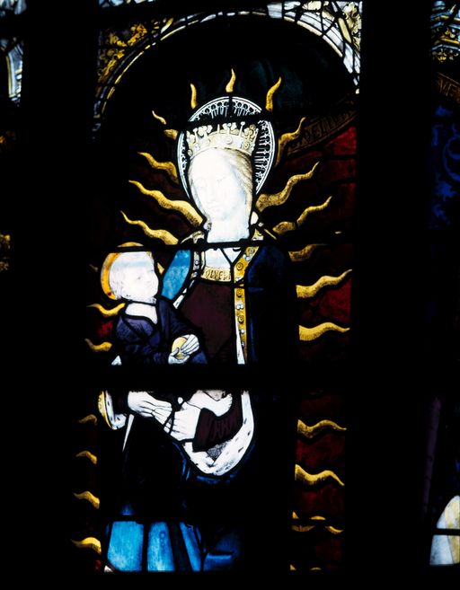 Verrière de la baie 5, panneaux b2-3 : la Vierge à l'Enfant (état en 1995)Immatriculation