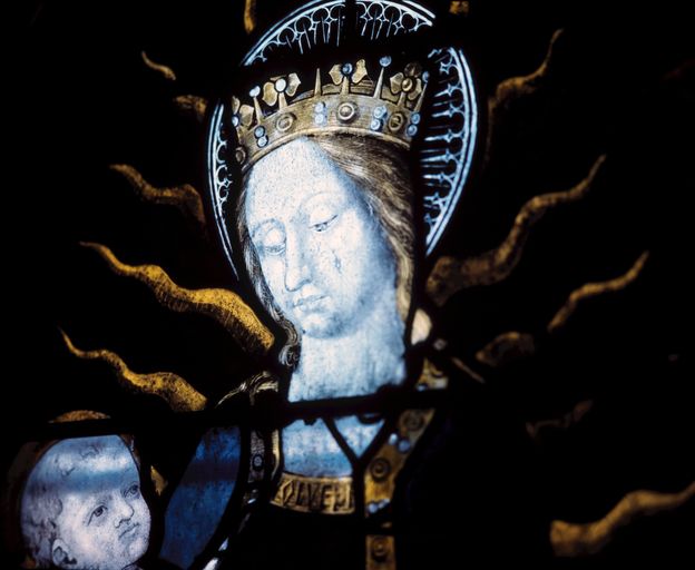 Verrière de la baie 5, panneau b3 : la Vierge à l'Enfant (état en 1995)Immatriculation