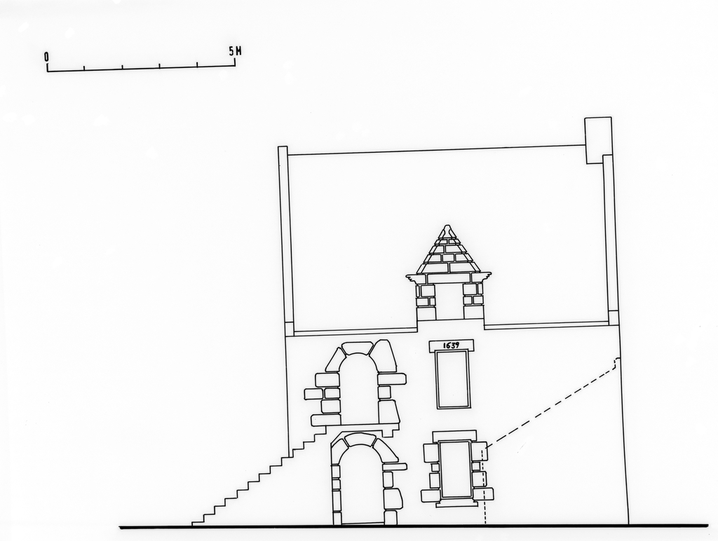 Restitution de la façade est XVIIe siècle.Immatriculation