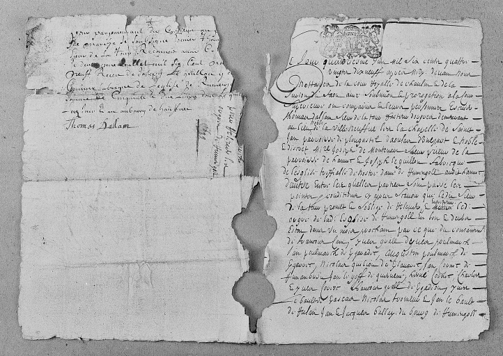 Contrat signé Thomas Dallam, 1699Immatriculation