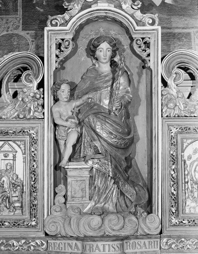 Groupe sculpté de la Vierge à l'Enfant dit Notre Dame du Rosaire,