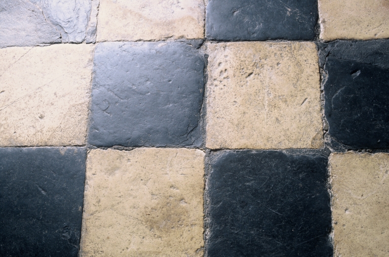 Rez-de-chaussée, vestibule : sol en carreaux de schiste et de microdiorite de LogonnaImmatriculation