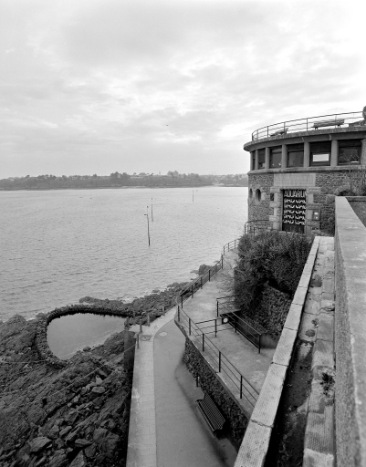 Vue extérieure nord de l'Aquarium avec le bassin.Immatriculation