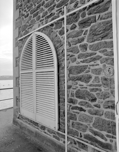 Détail d'une ouverture en brique en arc brisé.Immatriculation