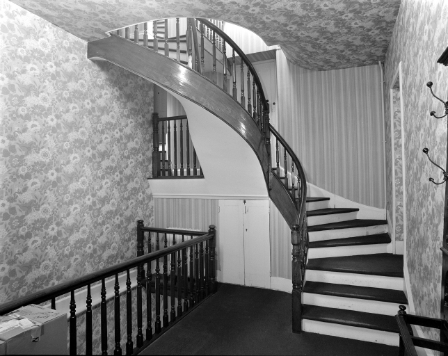 Escalier intérieur, rez-de-chaussée, entrée actuelle.Immatriculation