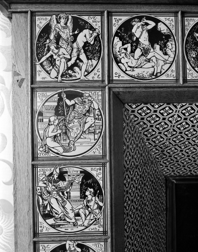 Détail mosaïque n°4 du décor de cheminée du bureau du directeur.Immatriculation