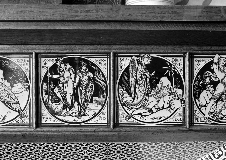 Détail mosaïque n°2 du décor de cheminée du bureau du directeur.Immatriculation