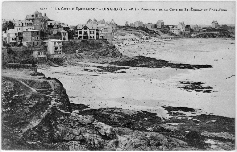 Carte postale ancienne - Collection G.F. - Dinard, Panorama de la côte de St-Énogat et Port Riou.Immatriculation