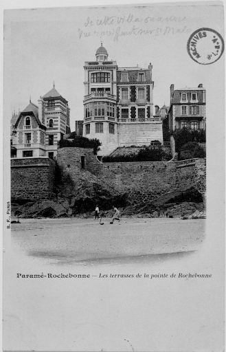 Carte postale début XXe siècle. Paramé - Rochebonne : Les terrasse de la pointe de Rochebonne.Immatriculation