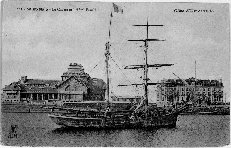 Carte postale début 20e siècle. 111 - Saint-Malo - Le casino et l'hôtel Franklin.Immatriculation