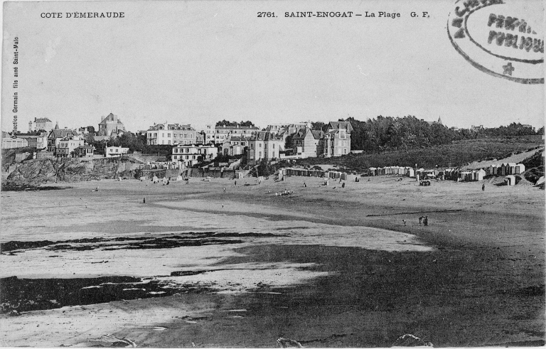 Carte postale ancienne - Collection A.G. - Saint-Énogat - La plage.Immatriculation