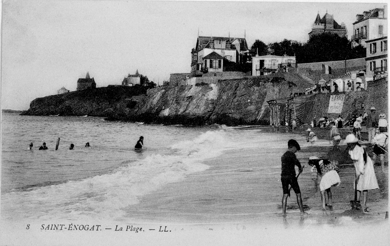 Carte postale ancienne - Collection LL - 8. Saint-Énogat - La plage.Immatriculation