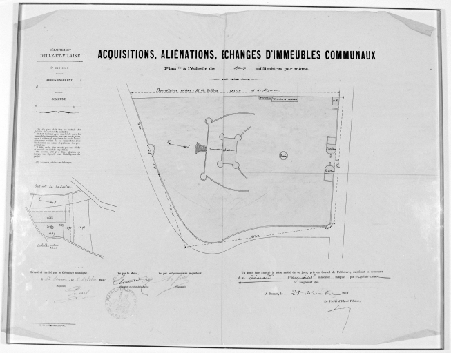 Plan masse et de situation - Acquisitions, aliénations, échanges d'immeubles communaux, 8 octobre 1871.Immatriculation