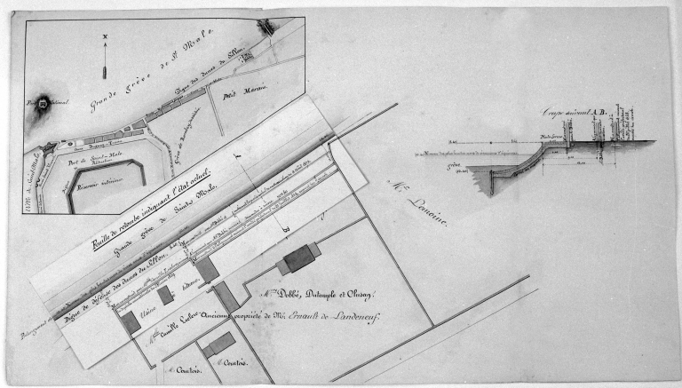 Plan général de la digue des Dunes, suite à la demande de M. Dobbé, 1875.Immatriculation