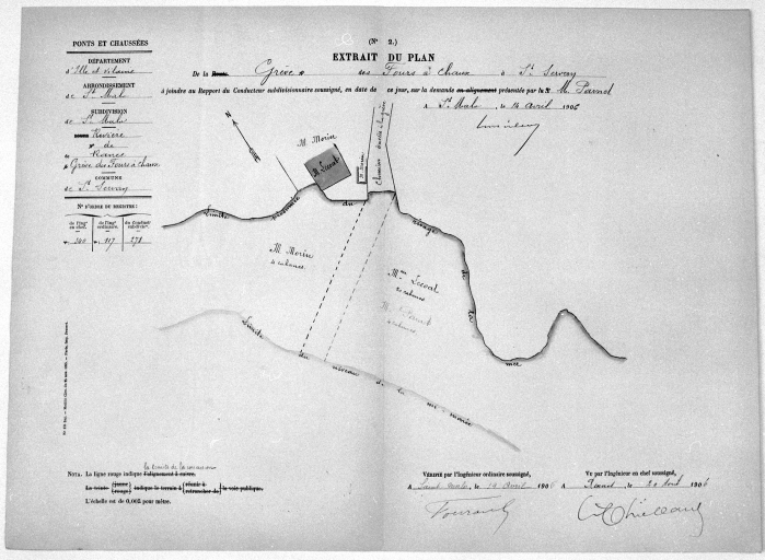 Plan de la grève des fours à chaux à Saint-Servan, plan en couleur par les Ponts et Chaussée, 1906.Immatriculation