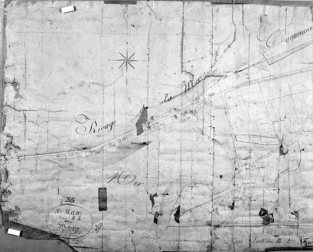 Extrait de la section A du cadastre dit cadastre napoléonien, 1836, commune de Saint-Malo.Immatriculation