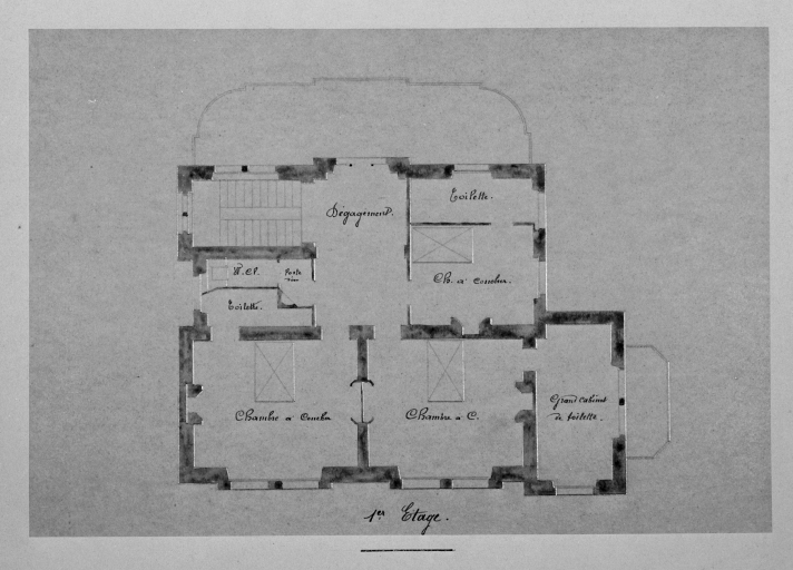 Plan du 1er étage, après 2ème transformation.Immatriculation