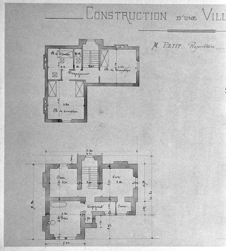 Projet de construction d'une autre villa pour M. Petit propriétaire, décembre 1889, plan de l'étage de soubassement et plan de l'étage de comble.Immatriculation
