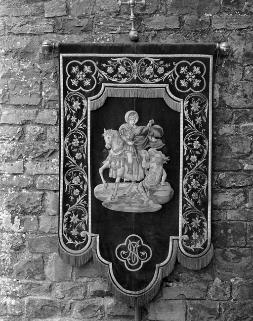 Bannière de procession : Sacré Coeur, Saint Martin partage son manteau, de paroisse, église paroissiale Saint-Martin (Balazé),