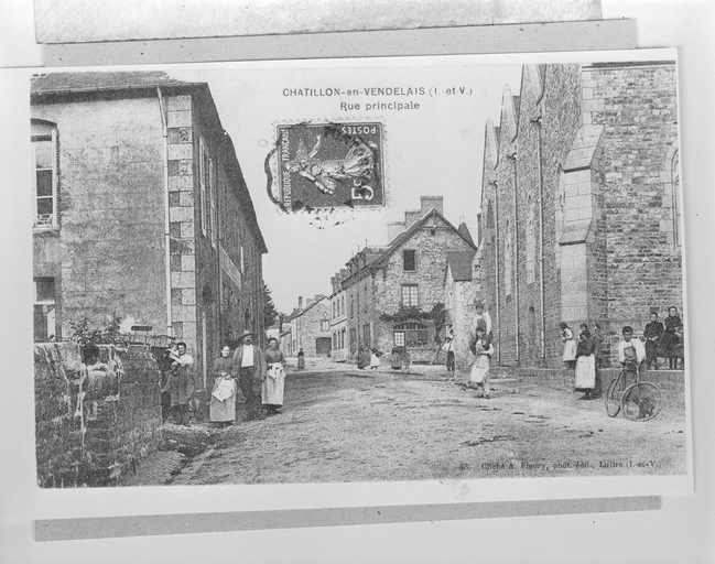 Carte postale ancienne. - Bourg, rue principale, vue générale.Immatriculation