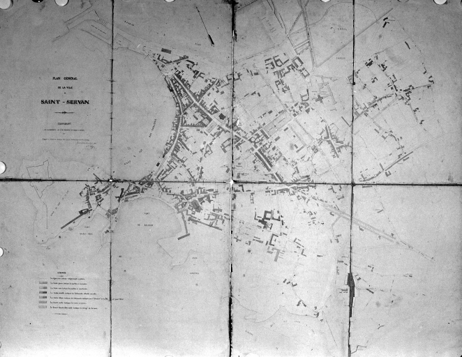 Plan général de la ville de Saint-Servan comprenant les alignements, les voies ouvertes et celles à ouvrir, 1872. Archives communales de Saint-Malo. 1 O 22 à 30 fonds Saint-Servan