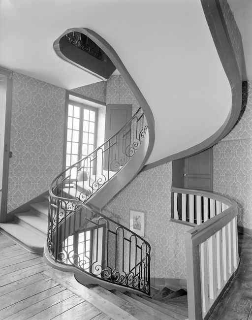 Escalier de distribution, détail de la volée de l'étage.Immatriculation
