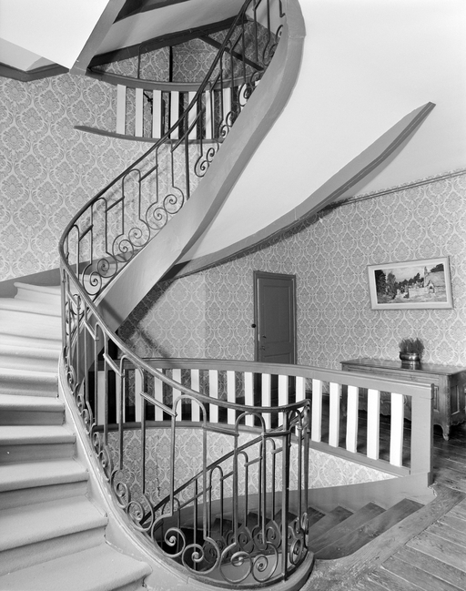 Escalier de distribution, détail de la volée de l'étage.Immatriculation