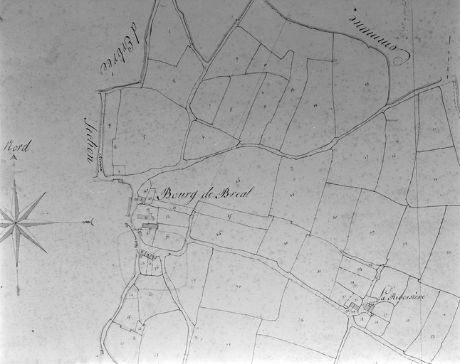 Bourg. Plan de situation. Extrait cadastral 1823, feuille A.Immatriculation