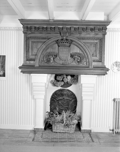 Vue générale de la cheminée avec la devise de Anne de Bretagne, salle à manger au rez-de-chaussée.Immatriculation