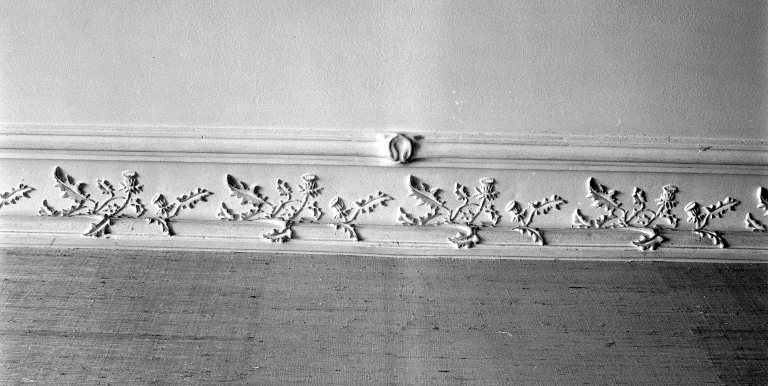 Détail corniche du plafond d'entrée.Immatriculation