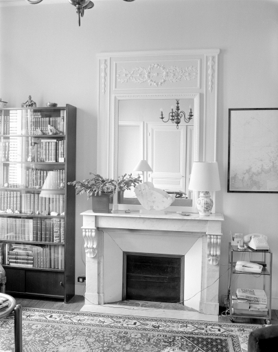 Vue générale de la cheminée avec trumeau au 1er étage dans l'ancienne chambre, actuellement salon..Immatriculation