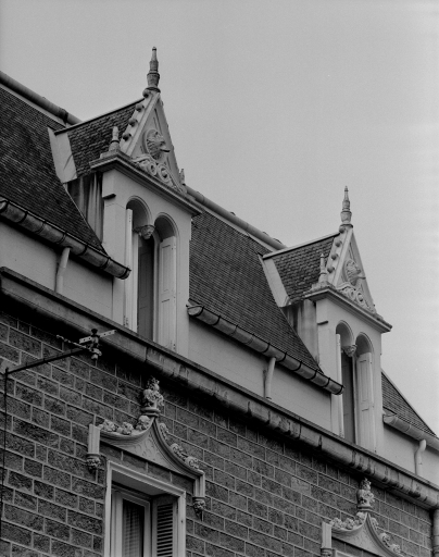 Vue latérale sur rue, détail lucarne.Immatriculation