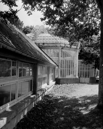 Au sud de la parcelle : vue de la serre - solarium.Immatriculation