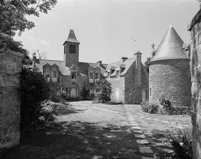 Vue générale prise de la cour carrée du logement secondaire et de la chapelle.Immatriculation